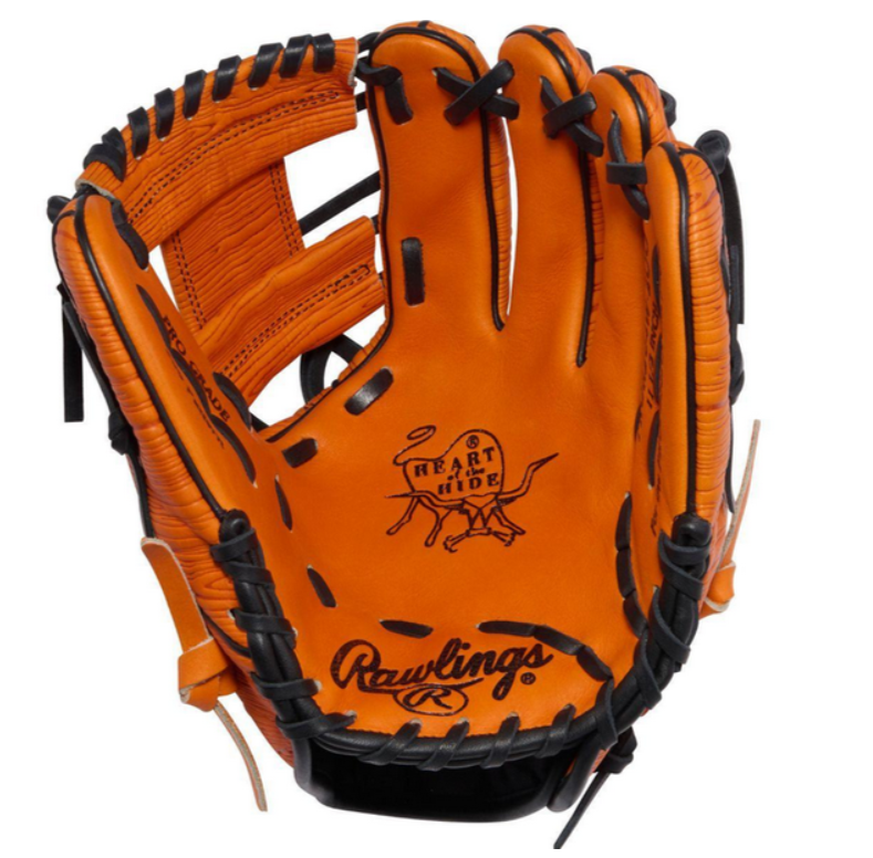 The Rawlings Heart of the Hide March 2026 Gold Glove Club 11.5″ Infield Glove is expertly crafted for infielders seeking superior performance and comfort. Featuring an I-Web design and a 200 wing tip pattern, this glove offers a wider feel and a deep pocket, ideal for quick plays in the infield. The combination of a conventional open back and thermoformed padding ensures optimal wrist support and flexibility. Enhance your game with the glove’s vibrant orange and black colorway, while enjoying the comfort of a deer-tanned cowhide lining and padded thumb sleeve.