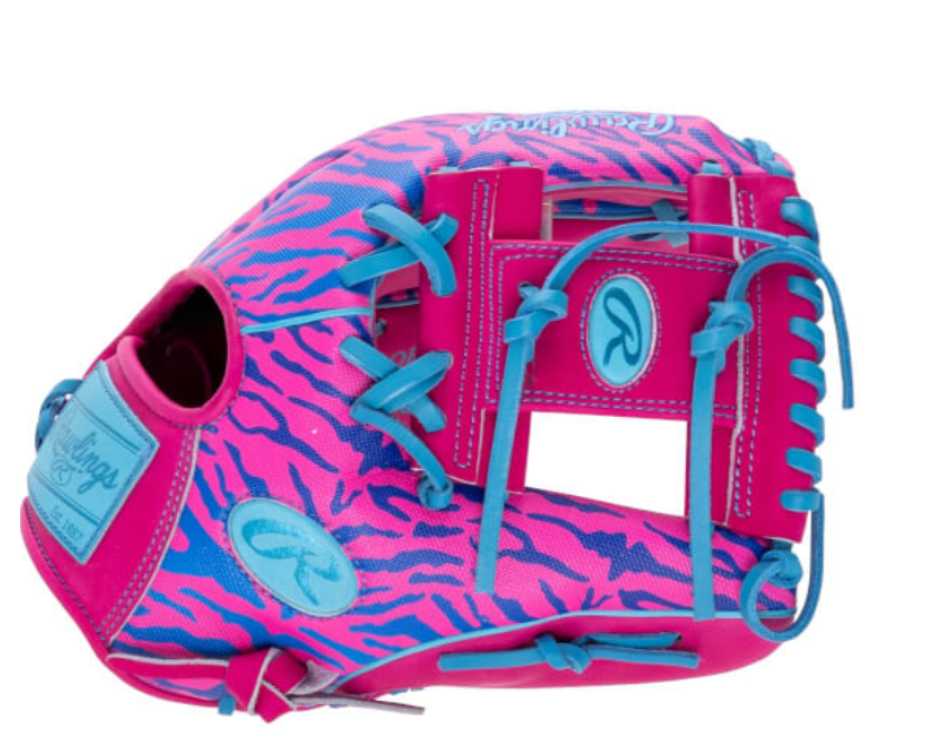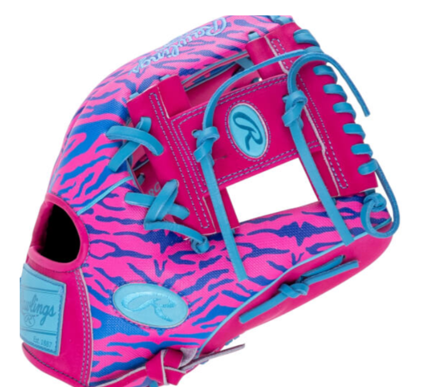 The Rawlings Heart of the Hide Spring Break PRO206SB delivers the trusted feel of premium steerhide with a bold pink and purple zebra colorway that refuses to blend in. Built on the popular 200 pattern, this 12-inch model features a shallow pocket and standard palm width, making it ideal for infielders who rely on lightning-quick transfers and confident ball control. Designed for high school to adult players, the PRO206 pattern offers a traditional shape with a slightly wider heel and balanced break-in for smooth performance on ground balls and quick reaction plays.